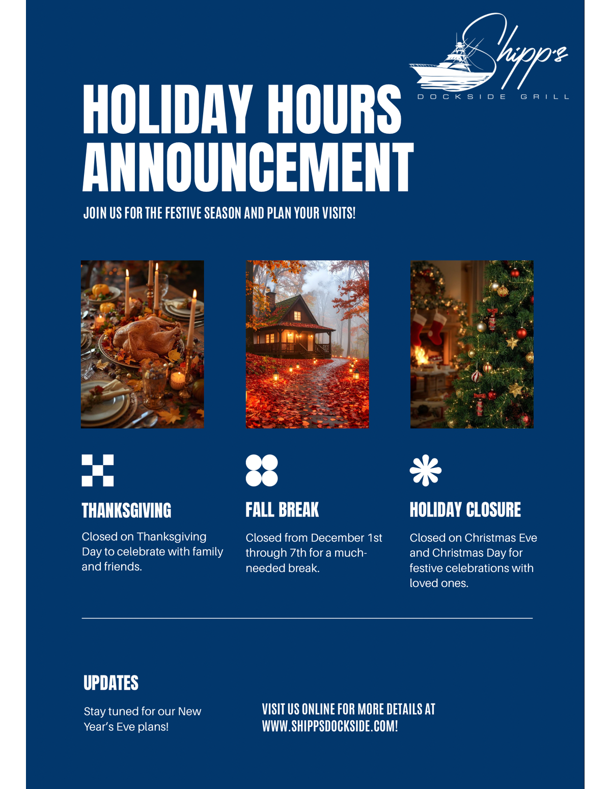 New Year’s Eve: Stay tuned! We’ll be announcing special plans soon.